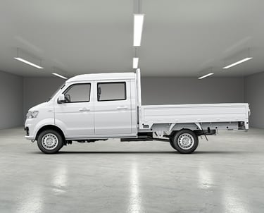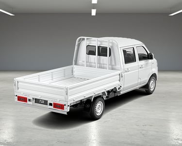 La Shineray T32 combina un diseño robusto con elementos pensados para el trabajo diario: neblineros delanteros para mejor visibilidad, guardafangos reforzados y rueda de repuesto full size lista para cualquier imprevisto. Sus nuevas dimensiones no solo mejoran su presencia en calle, también aumentan su capacidad de carga, convirtiéndola en la camioneta comercial ideal para operaciones en Guadalajara, Zapopan y todo Jalisco.